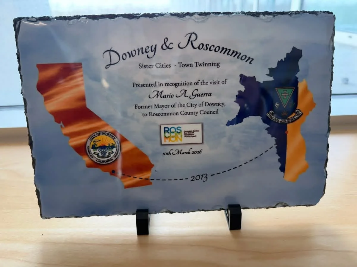 There are moments in public service that stay with you long after the title fades. For me, one of those moments began in 2013, during my second term as mayor, when I had the extraordinary honor of traveling to Roscommon, Ireland—the birthplace of Governor John Gately Downey, the namesake of our city.