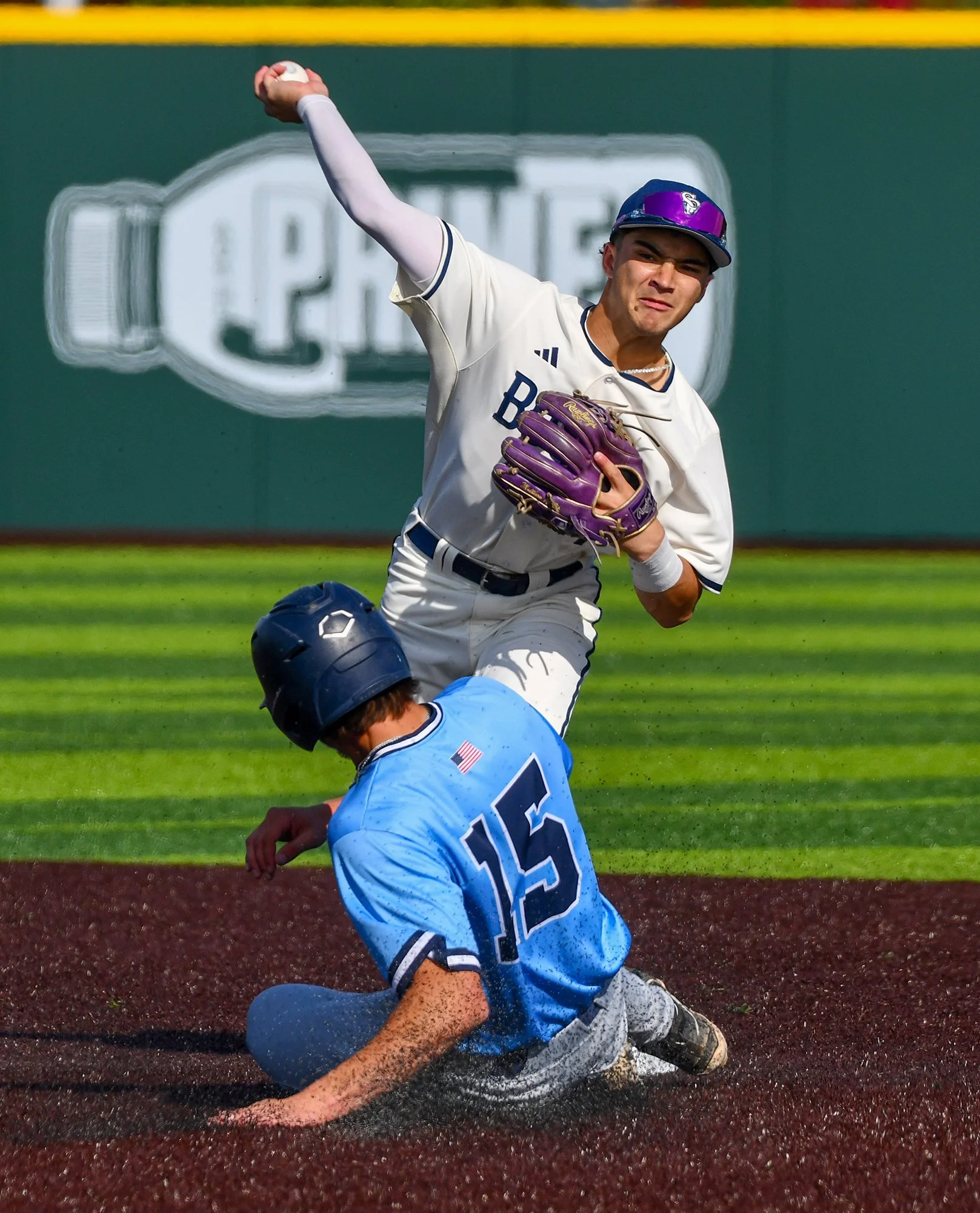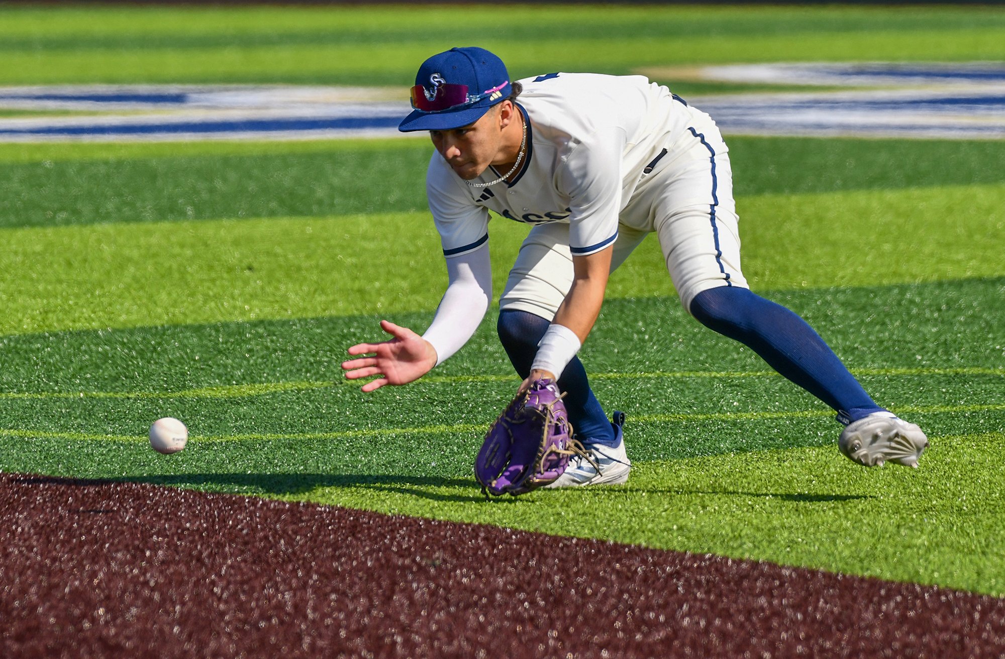 Sophomore catcher Richie Avina (single, R) walked, followed by a run-scoring single by pinch hitter James Stout for the eighth run of the game scoring Clark.