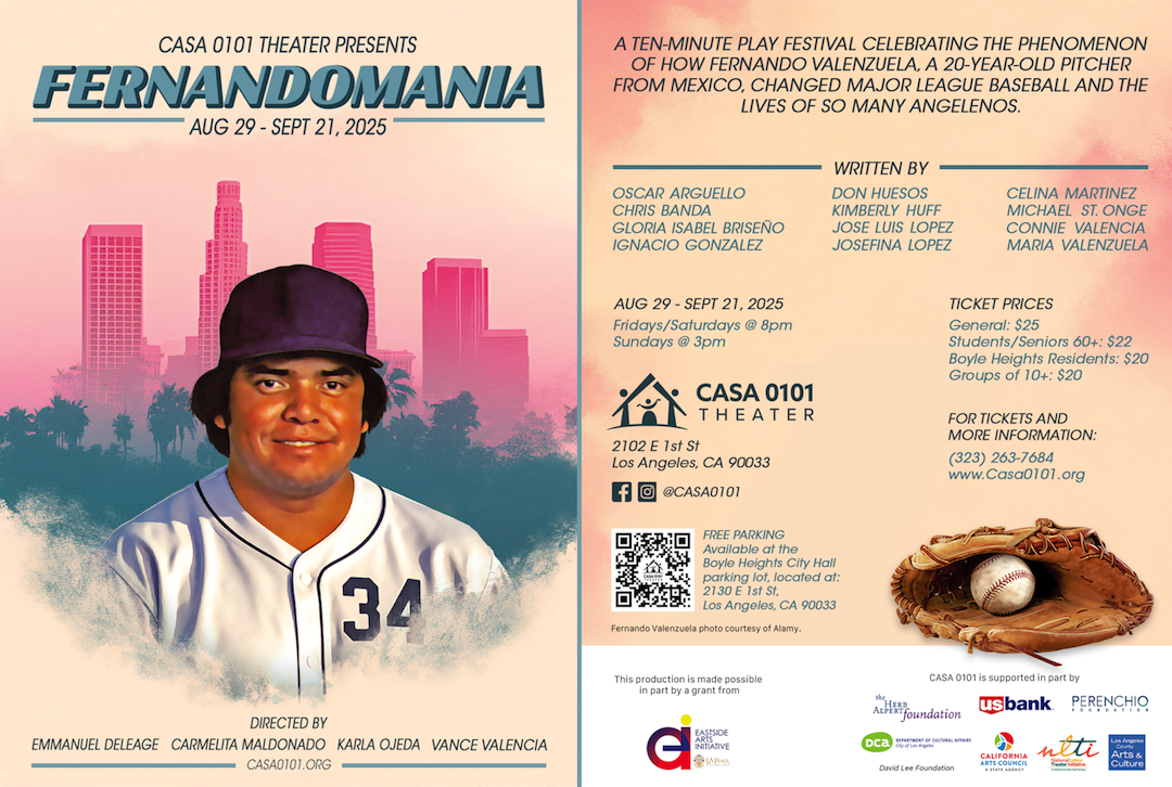 LOS ANGELES — CASA 0101 Theater in Boyle Heights will open Fernandomania, a ten-minute play festival honoring Dodgers legend Fernando Valenzuela, this Friday, Aug. 29. The four-week production features 12 original works written by Southern California playwrights, including Downey resident Ignacio Gonzalez, and runs through Sept. 21 at the Gloria Molina Auditorium.