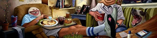 “Sculptural intermedia works, including one large installation piece, define an atmosphere that complements several large paintings. Large ‘portraits’ reveal individuals as the sum of what they consume; the food, information, memories, fantasies, regrets, and nonsense we each are bombarded with constantly.