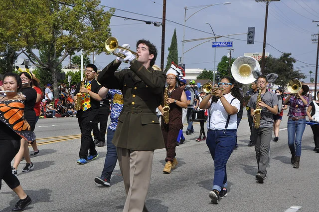 Having started out as a local neighborhood costume parade and contest, culminating in awards and prizes for costumes, it has grown into a major Southland fall event encompassing 21 marching bands and a cast of thousands marching in the legacy of the parade's namesake.