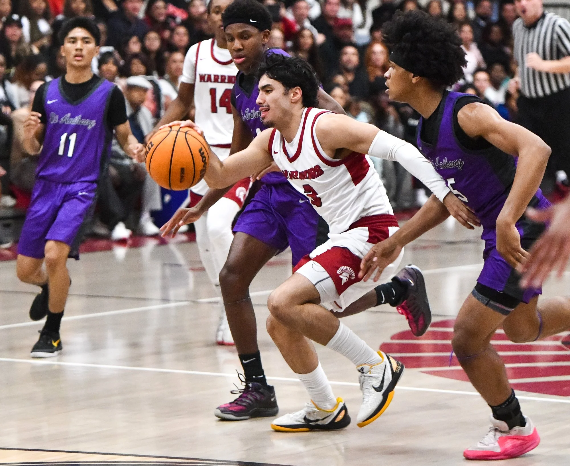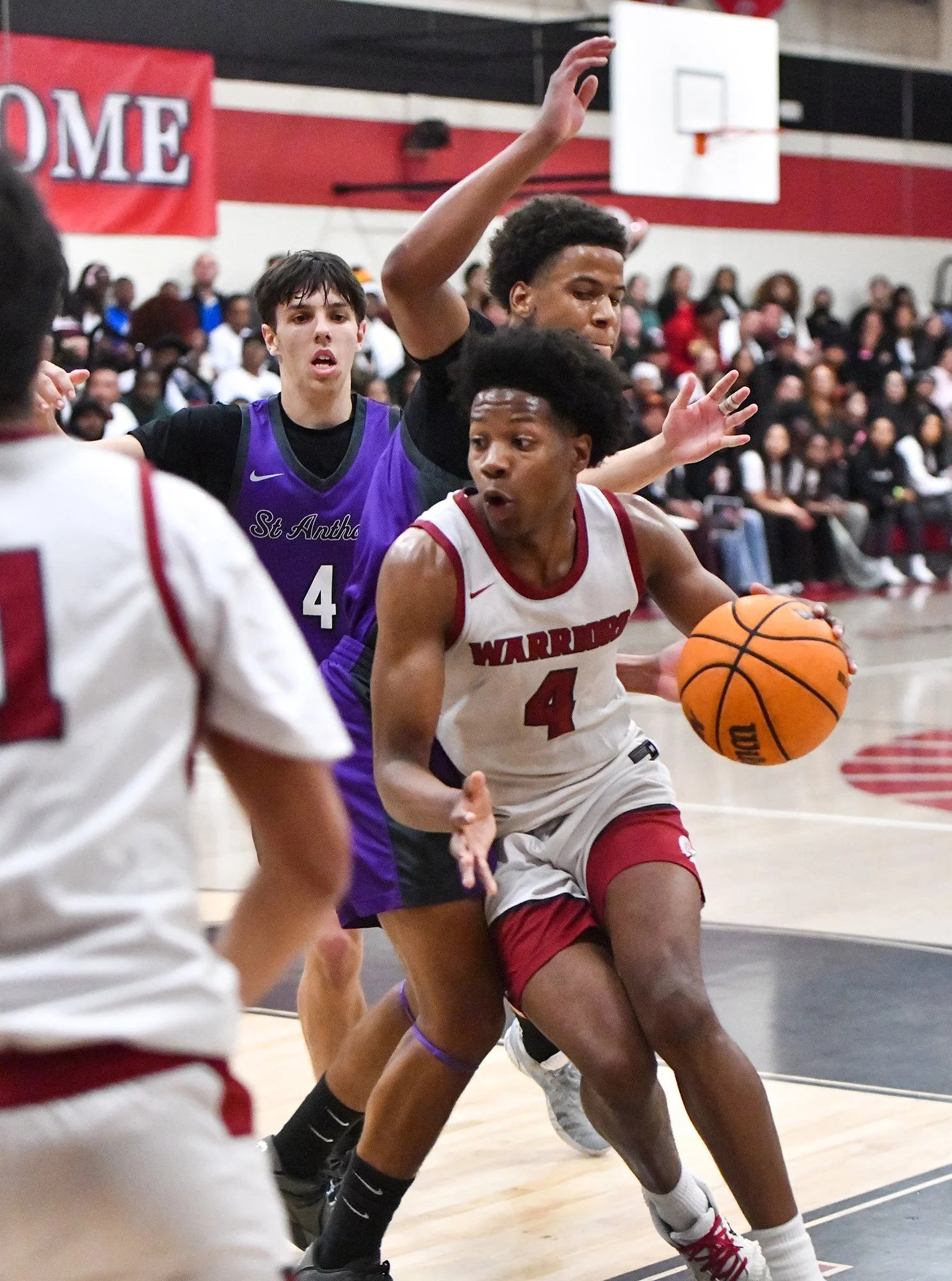 With the Warriors trailing by only by six points, 69-63, with :52 seconds remaining, Gates scored his only points of the quarter on a long 3-pointer to close within three, 69-66. But St. Anthony outscored the Warriors, 6-2 down the stretch on a layup and four free throws to put the game away.