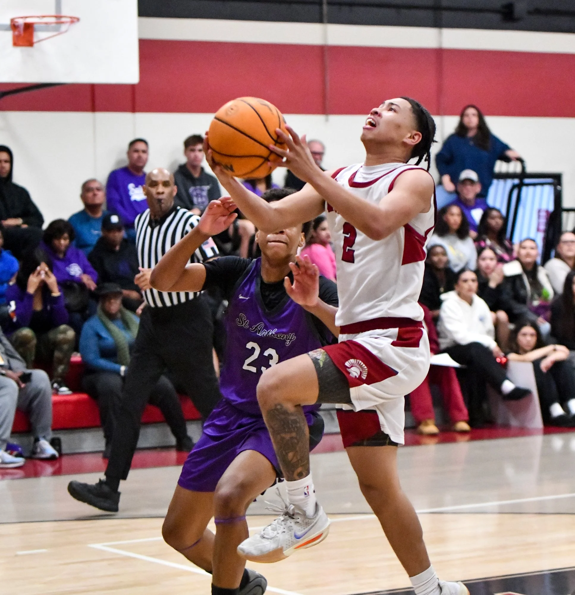 DOWNEY – The 2025-26 regular season for the St. Pius-St. Matthias Academy (PMA) Boys Basketball team came to an end with a 75-68 Del Rey League loss to visiting St. Anthony Monday (February 2) night in a packed gym on senior night.